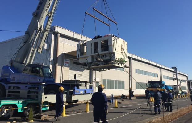 輸送から据付、さらには電気、配管、ダクト、足場設置などの付帯工事まで